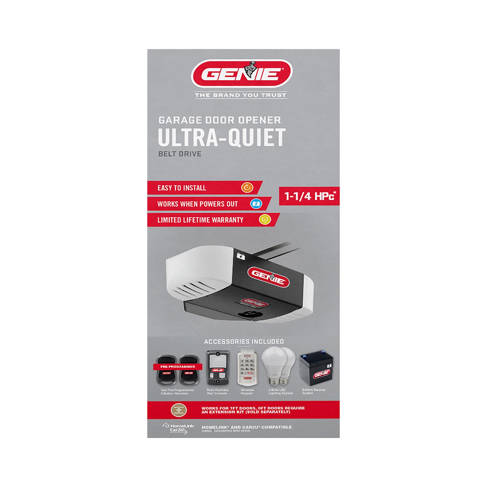 Genie 1 1 4 Hpc Ultra Quiet Belt Drive Garage Door Opener With Battery Backup Black Bjs Wholesale Club